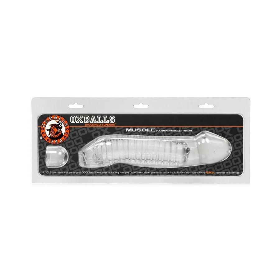 Cette gaine de pénis MUSCLE COCKSHEATH est proposée sur le gay shop par la marque Oxballs. Elle est ici dans sa version transparente qui laisse apercevoir le relief strié à l’intérieur. Cela assure du plaisir même pour l’actif.