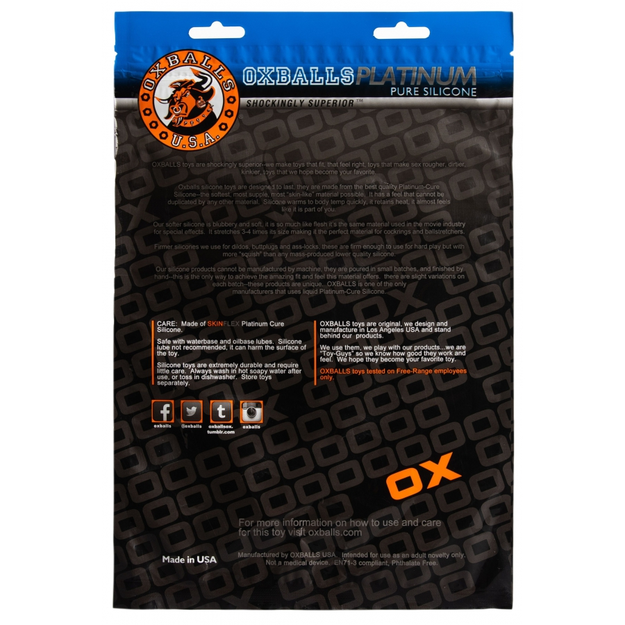 Ce plug Tunnel PIG-HOLE de la gamme Platinum est conçu par la marque Oxballs. Il est réalisé en matière Silicone avec une couleur bleu métallique.